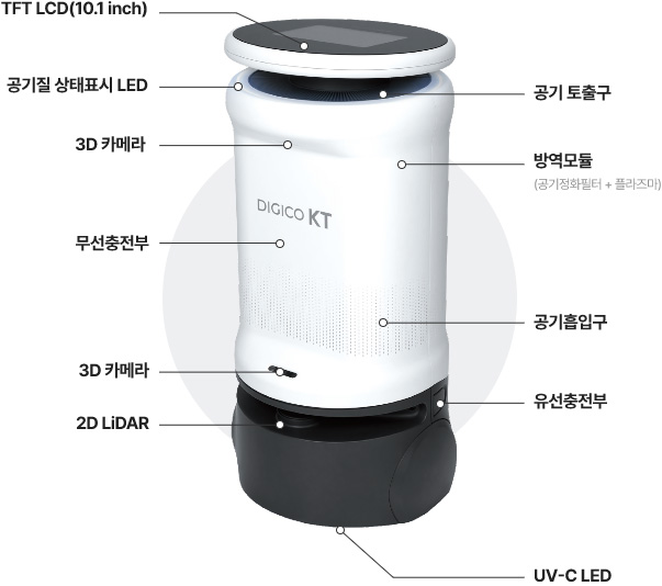 | 공기질 센서 | 극/초/미세먼지, TVOCs(유기화합물/냄새), CO2,오존, 온도, 습도 (총 6종 센서 탑재) |
