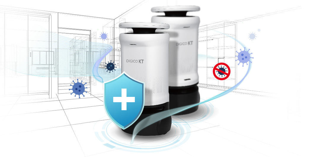 로봇이 구석구석 이동하며 로봇 바닥면의 UV-C Lamp로 바이러스들을 살균해줍니다.