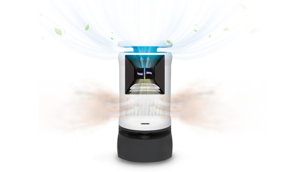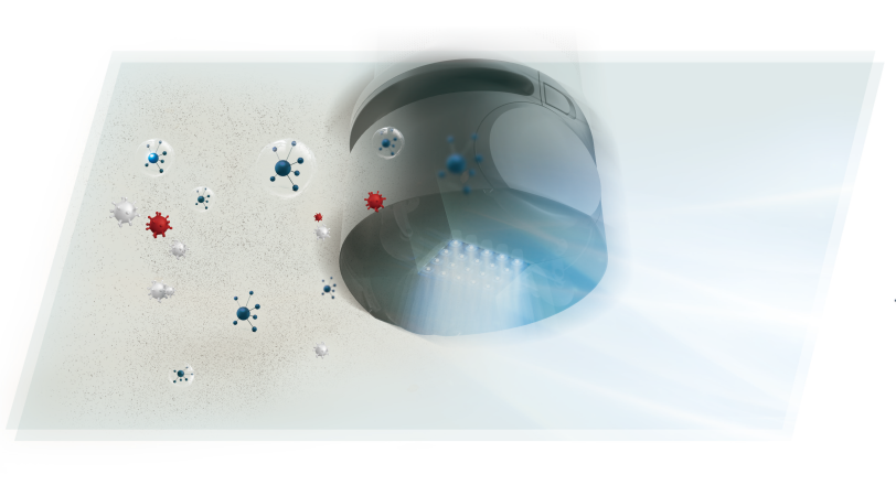 하단에 탑재된 UV-C 발광다이오드(LED)가비말 등으로 바닥에 낙하된 바이러스를 정밀하게 살균합니다.